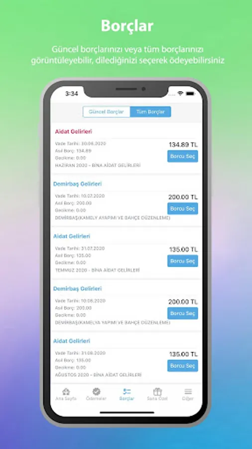 There are 2 tabs in the debts tab, current debts and all debts. The debts you need to pay are in the current debts tab, all debts processed to your current account are included in all debts. You can make payments with your credit card by choosing from current debts or all debts.
