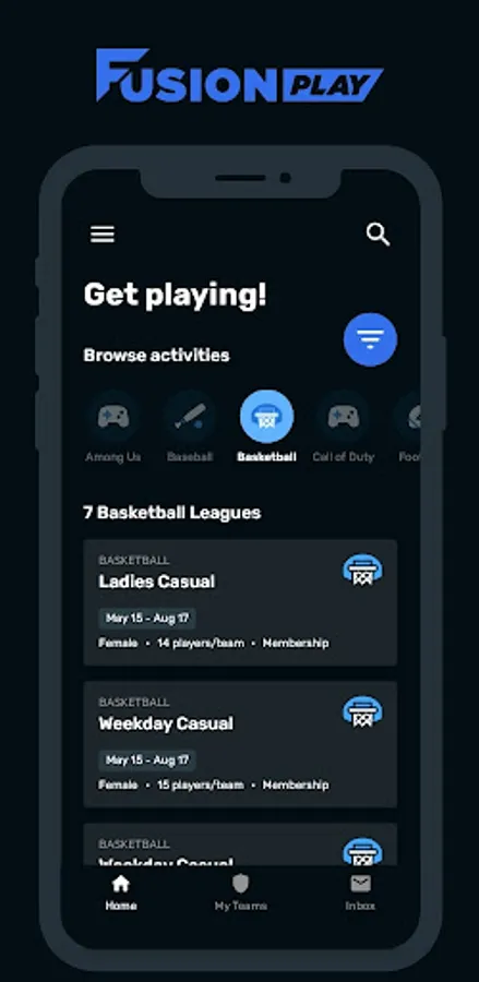 Get in the game with Fusion Play! Connect with friends at your school to create intramural teams, manage your rosters and get all the info on upcoming sports! The Play app's push notifications and real-time team stats and rankings will keep you in the loop on what's happening with all your teams. Download Fusion Play and start playing today!