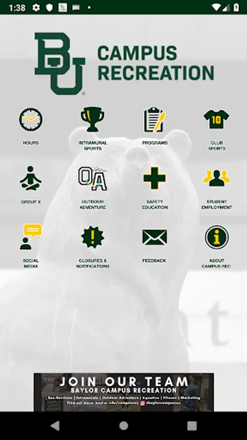 Official app for Baylor University Campus Recreation; includes Intramural Sports, Outdoor Recreation, Club Sports, Aquatics, Safety Education and more!