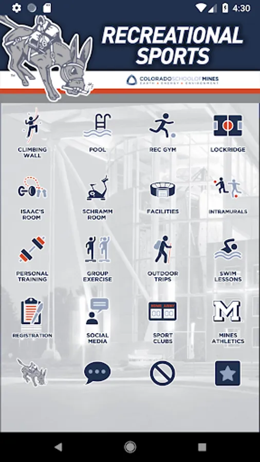 This app is the official app for Colorado School of Mines Recreational Sports. Find out about our programs, including intramural and club sports, outdoor trips and rentals, and group fitness classes. Check out our building hours, open swim times, climbing wall hours as well as get notifications on closures, special events and more!