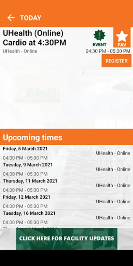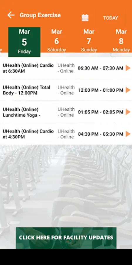 Welcome to the official app for the UHealth Fitness & Wellness Center. This app will allow you to stay connected & keep you up to date on the latest virtual & in-person programs & services offered. Information on group exercise classes & wellness programs is available at your fingertips. You can receive notifications of class cancellations, facility updates & upcoming special events. Find your fit by choosing your favorites & get reminders sent to your phone.