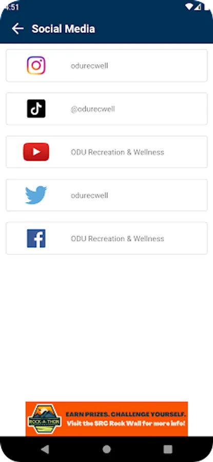 With the ODU Rec Well app, you can access the SRC by scanning your unique barcode found in the app, register for group exercise classes, join an intramural league or sport club, sign up for an outdoor adventure, register for swim lessons, and so much more! You also will have the opportunity to receive push notifications for SRC announcements such as closures, program registration alerts, and special events.