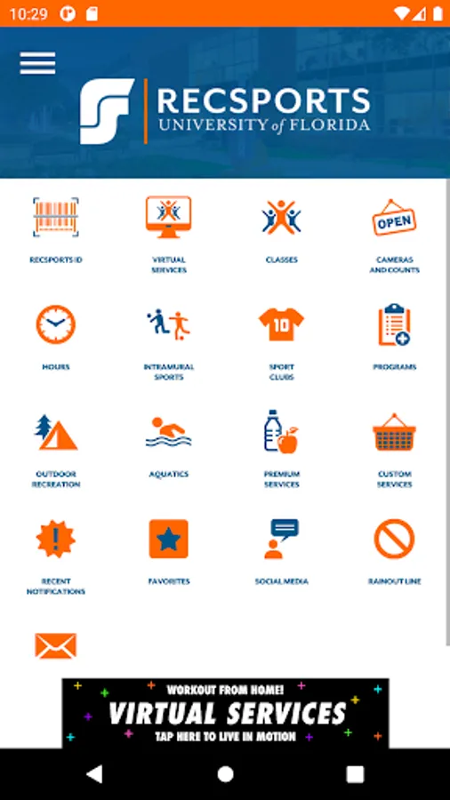 With the UF RecSports app, register for fitness classes, request custom services, join an intramural league or sport club, and plan your next adventure with Outdoor Recreation. Allow push notifications to receive breaking news like facility closures and special events. The world in motion, one Gator at a time.