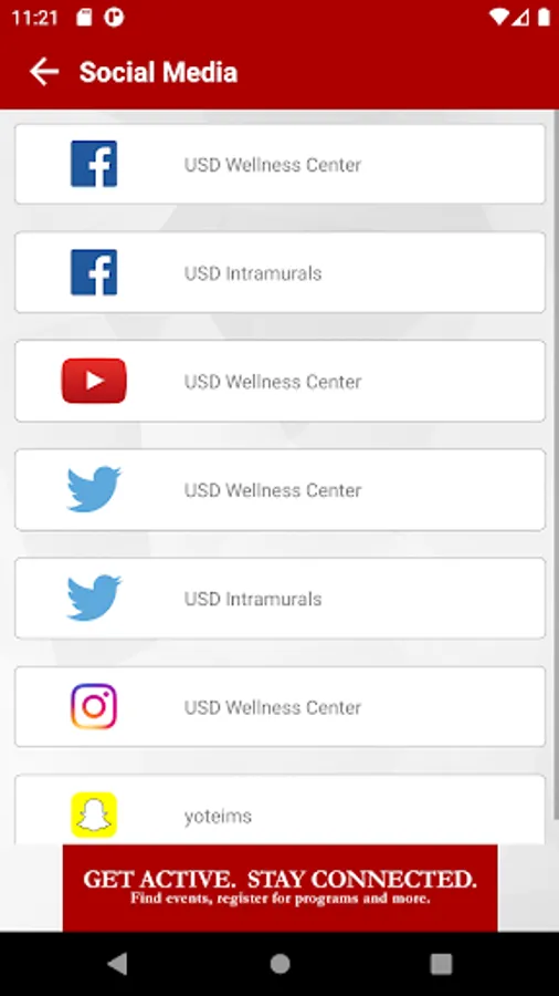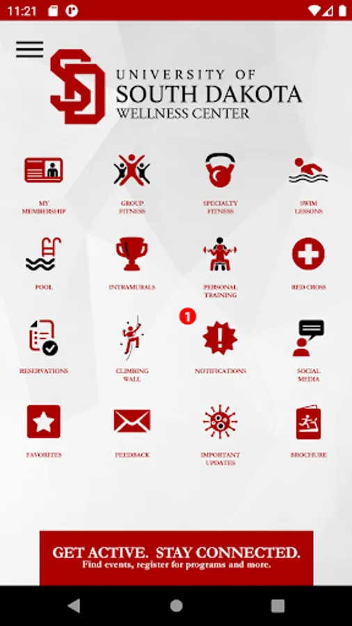 The official app of the University of South Dakota Wellness Center. Includes Group Fitness, Personal Training, Climbing Wall, Aquatics, Safety Education, Intramurals and more! Stay up to date with Wellness Center programming by downloading our app. Get access to facility hours, event schedules, and programs.