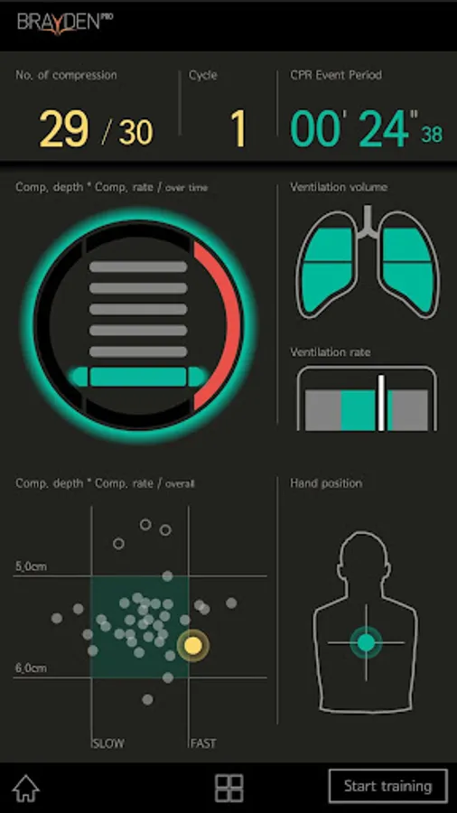 BRAYDEN PRO provides real-time feedback of CPR performance which can be reviewed and analysed and downloaded and exported by connecting the BRAYDEN PRO manikin to an Android compatible device loaded with this app.