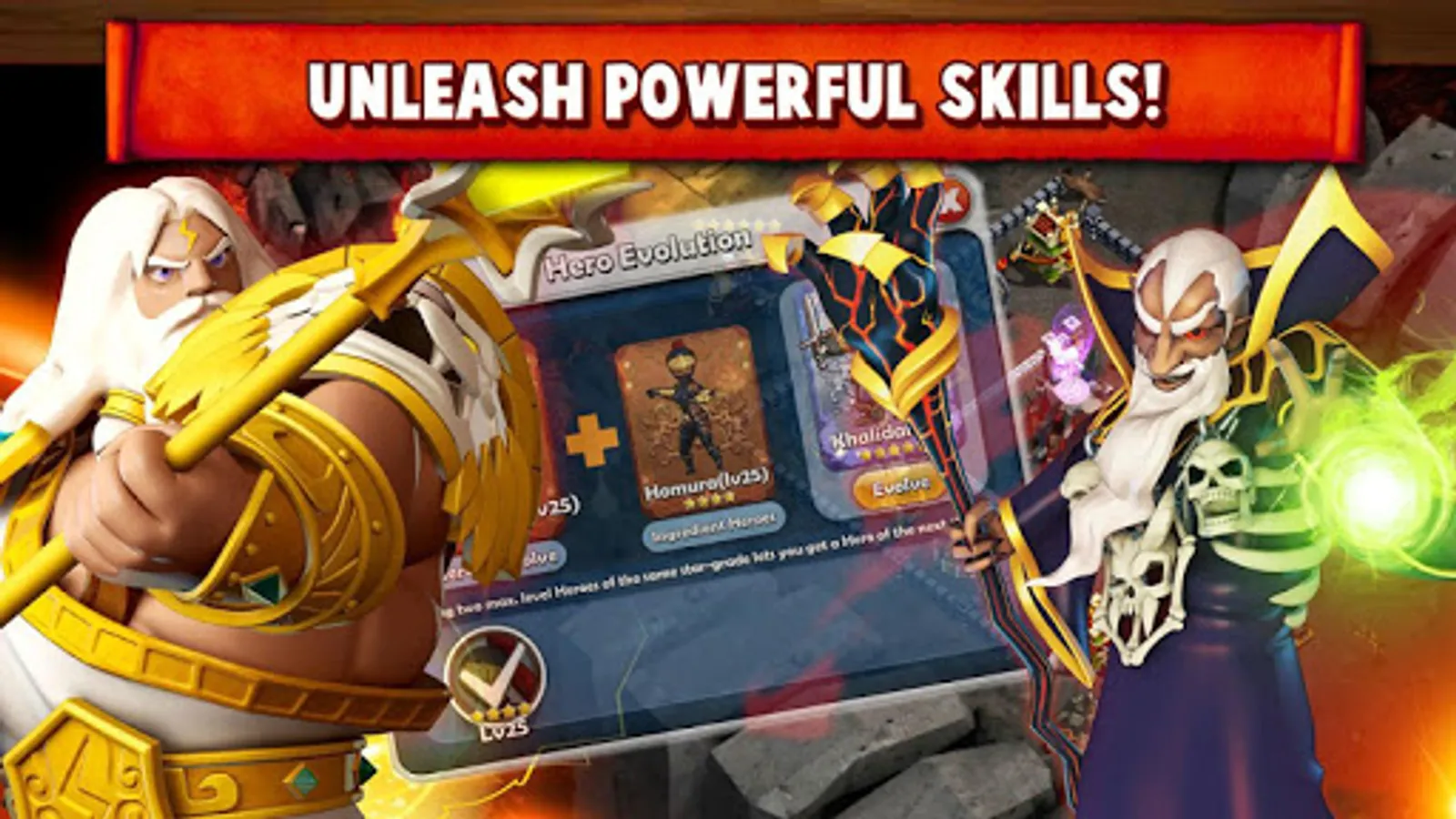 ● From the almighty Zeus with his thunderbolt to Cleopatra the queen of beauty and intrigue, choose and deploy your favorite Heroes for attack & defense!
