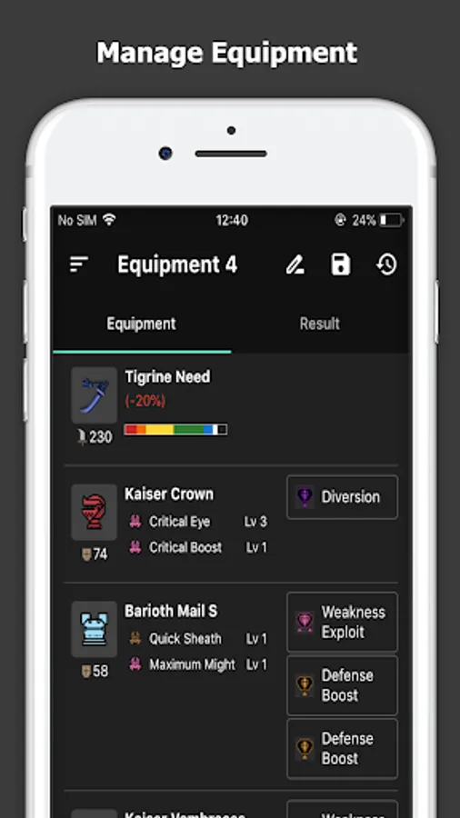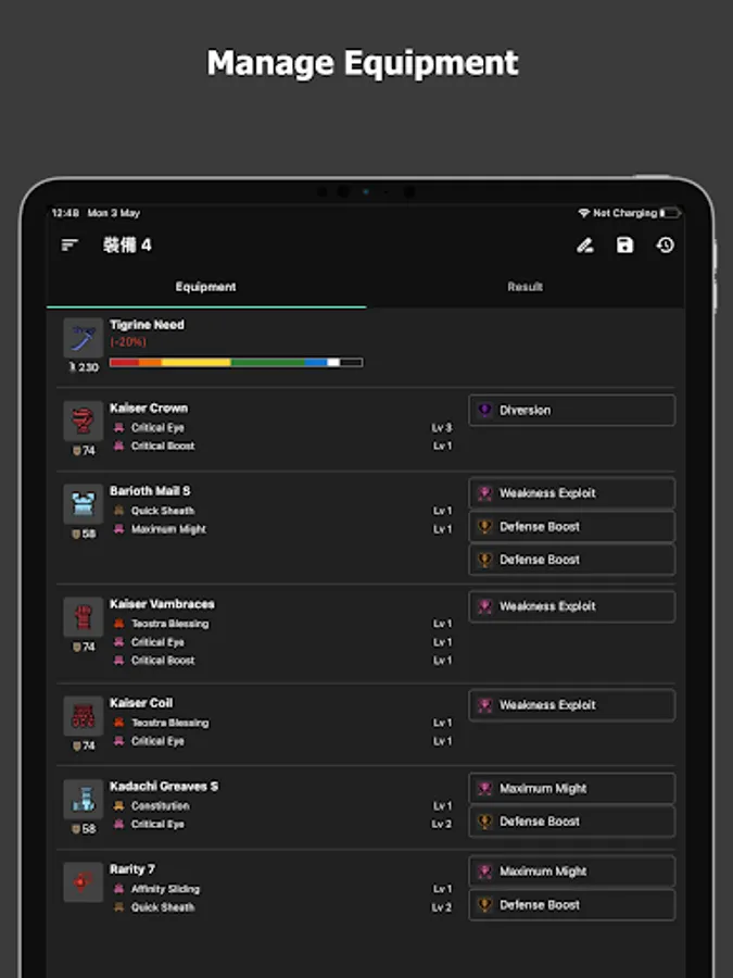★「Manage Equipment」- Build your own equipment set and check out the skill and stat.