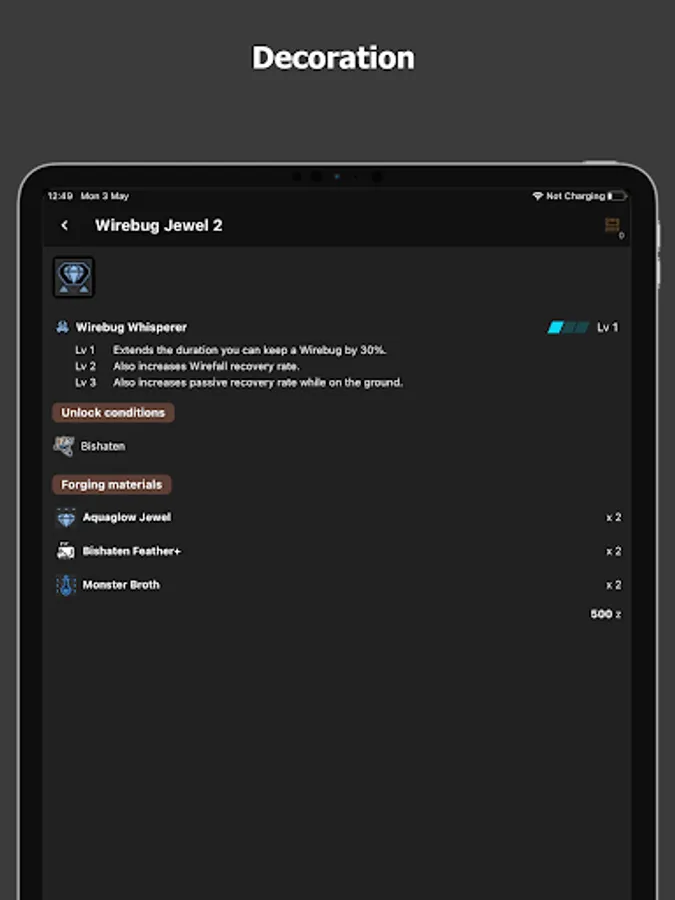 You can check all the game information including monsters, weapons armors, quests etc. And also, you can check out all the information and mark as collected / owned / clear.