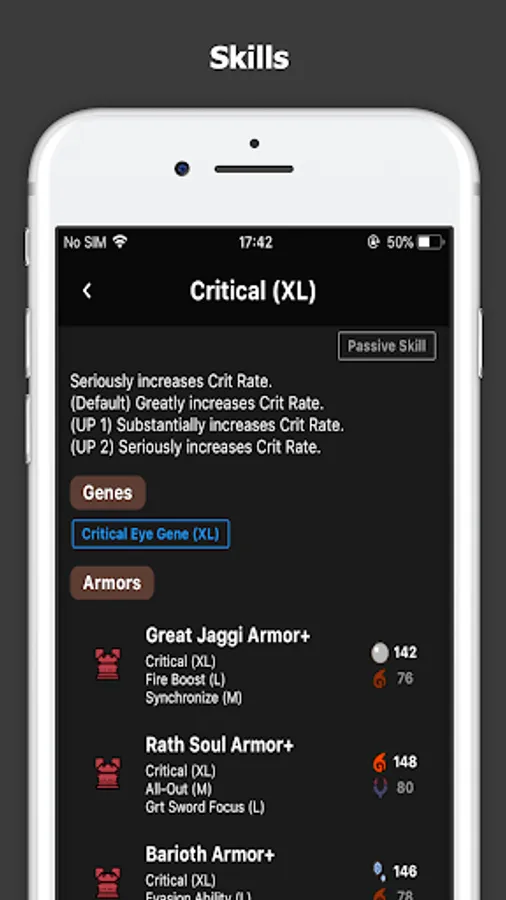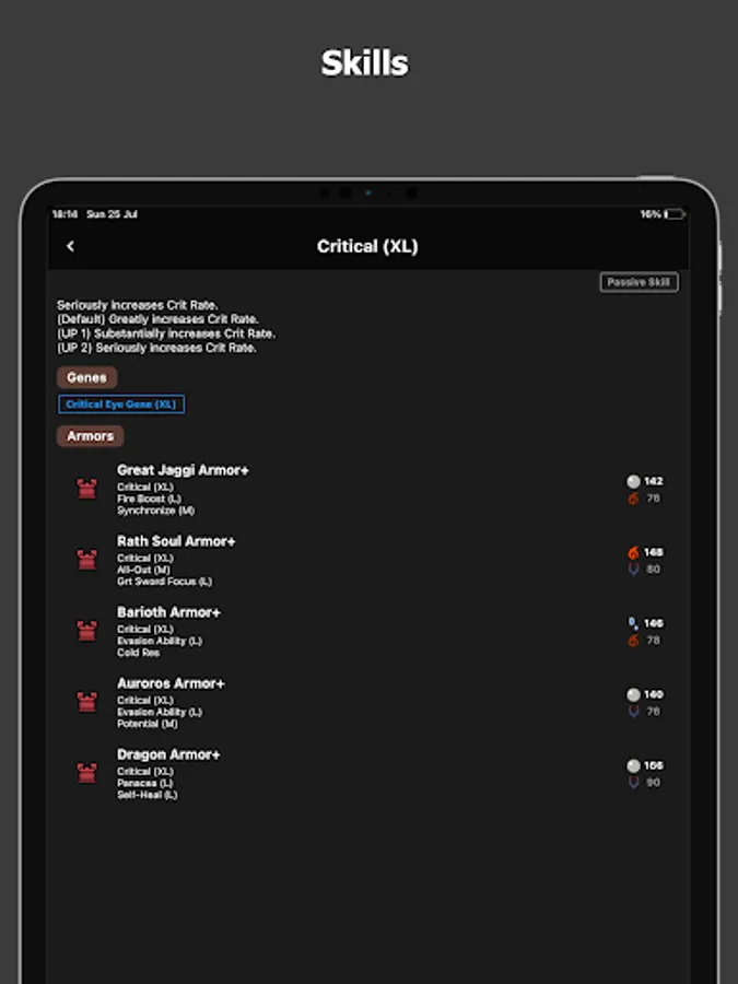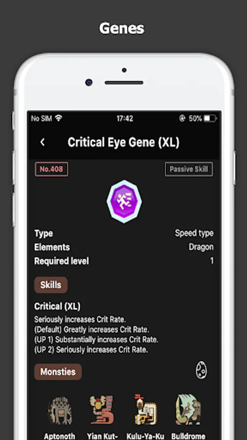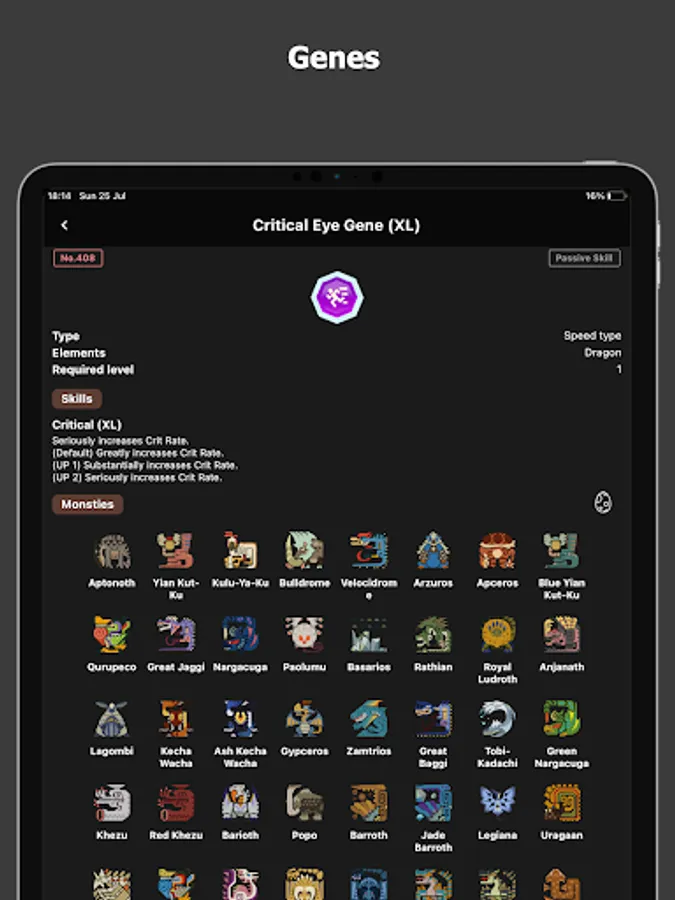 「Gene info」- Shows the gene info, related genes and monsters carried.