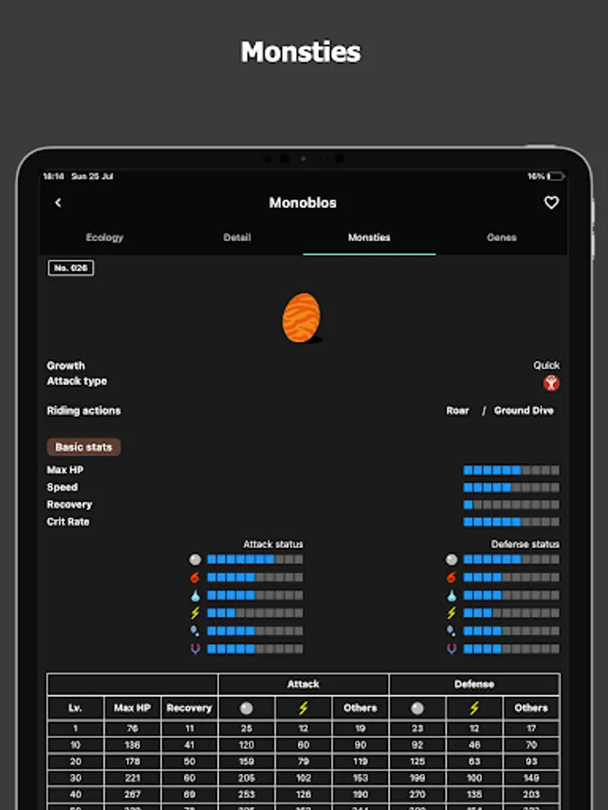 「Monster fight info」- Shows the weakness and attack type of monsters to win the match.