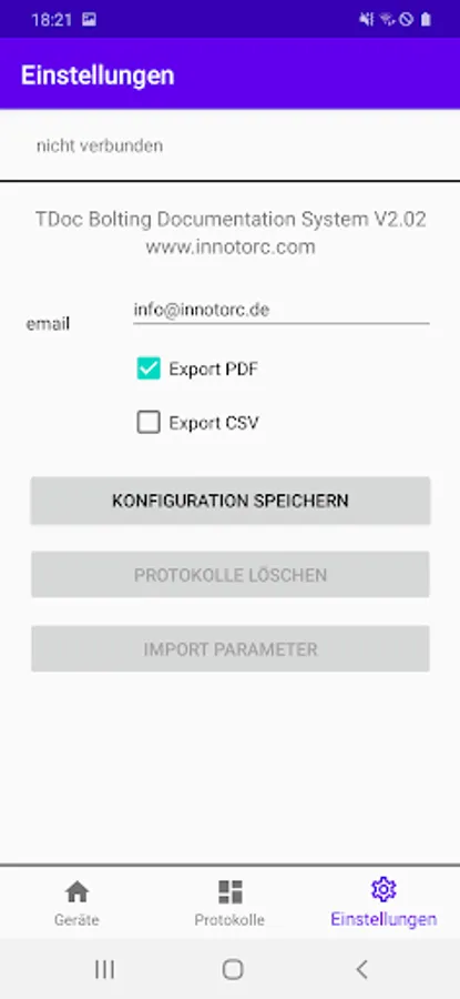 Import und Export wahlweise als CSV-Datei oder als PDF-Datei. Datenverwaltung auf PC wahlweise mit Excel oder komfortabler PC-Software.