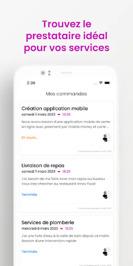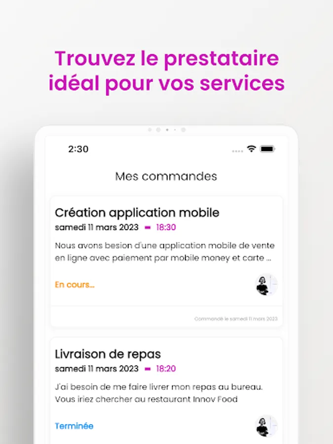 Our on-demand service application offers you practical and tailor-made solutions to simplify your daily life. With our user-friendly platform, you can order fast and reliable services with just one click. We offer a variety of personalized services to meet all your needs, without worrying about costs or delays. Our commitment to quality and transparency ensures that you always get the best possible service. Join our community of satisfied users and enjoy an easier life with our innovative on-demand service.