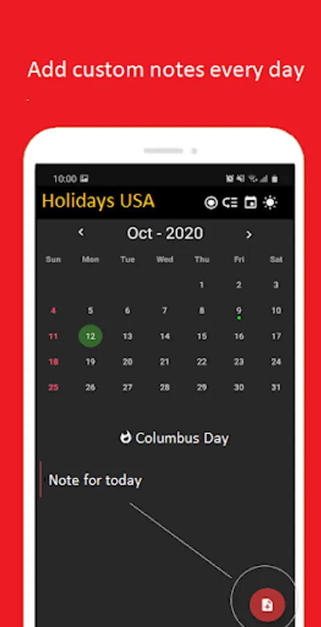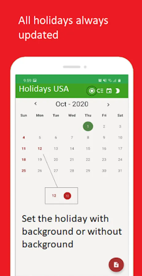 -> Optional holiday shading.