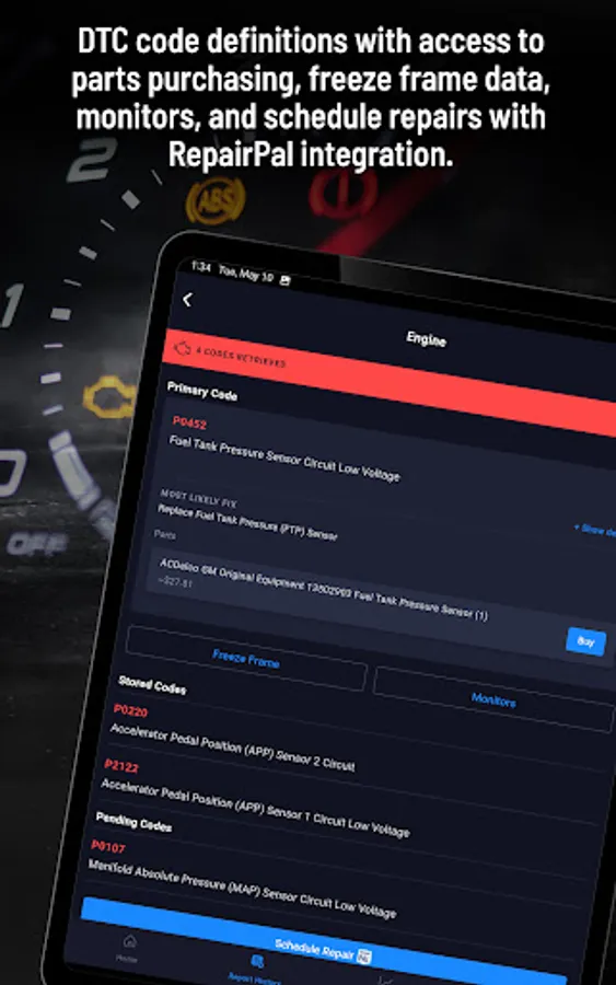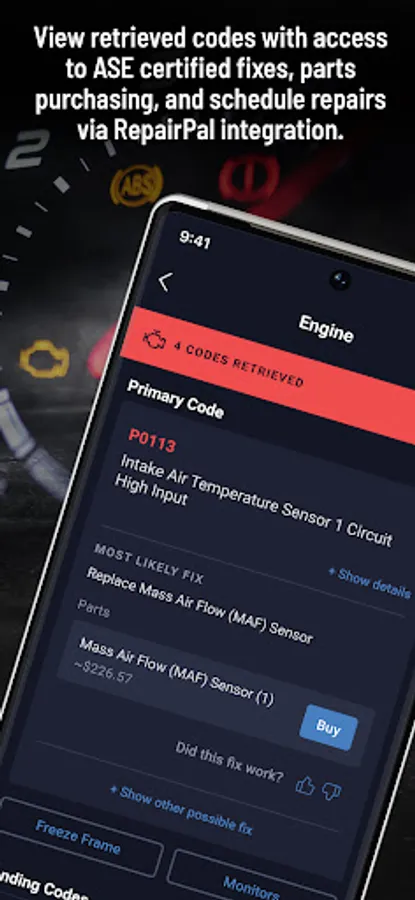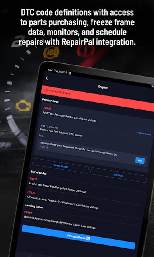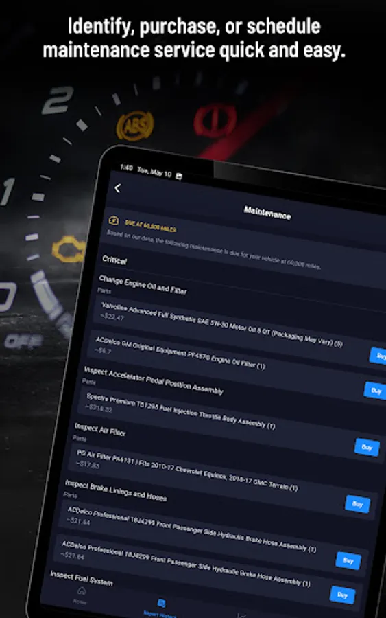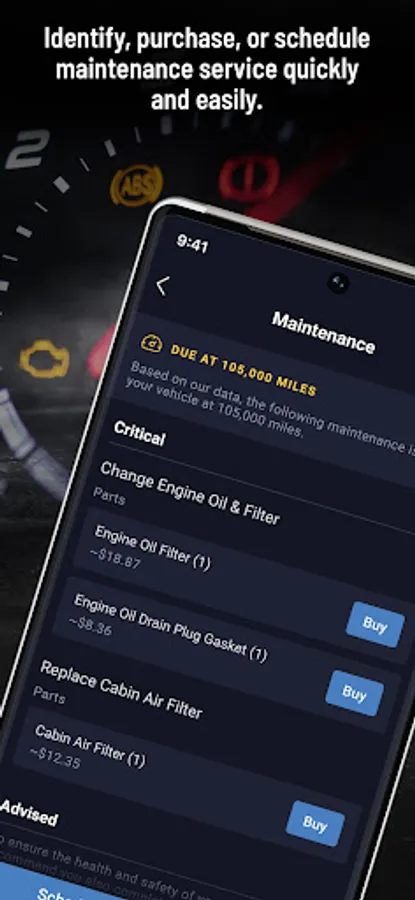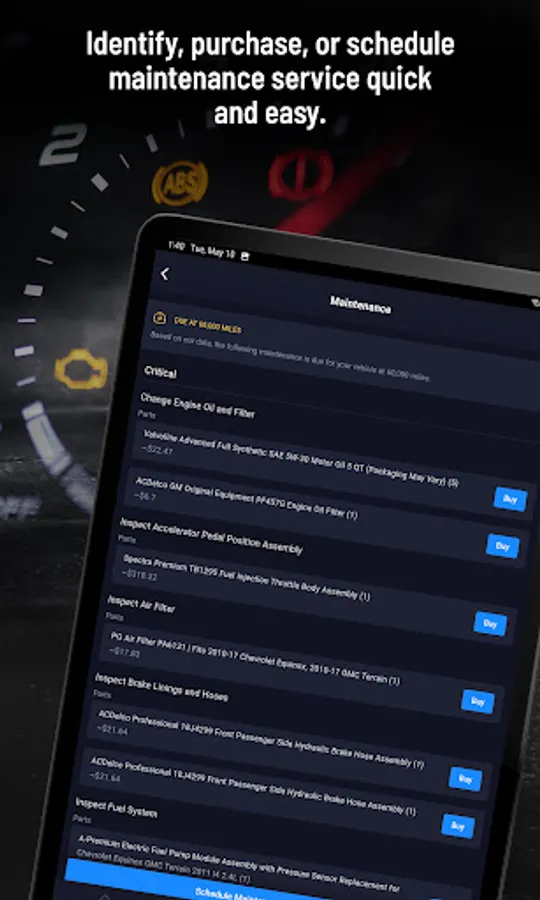 Identify and purchase the right parts (maintenance and repairs) for your specific vehicle instantly from your favorite online retailer. This in-app feature makes it easier and faster to find the right quality parts to get the job done.