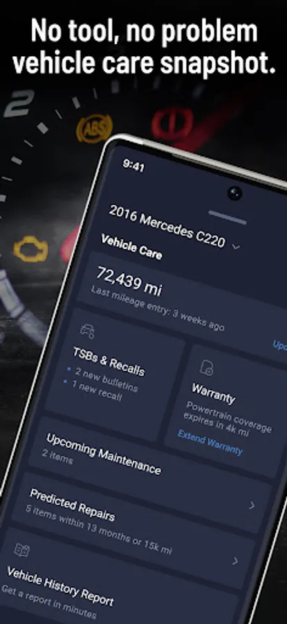 - No Tool Needed – View vehicle maintenance, predicted repairs, TSB/Recalls, Cost to Own, and Code Definitions! All available even if you do not own a compatible tool.