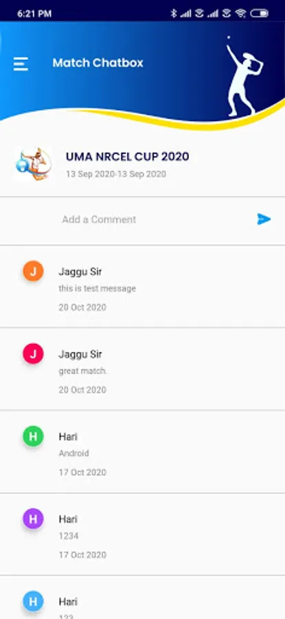 It also has Match Chatbox where users can share their comments/experiences both as guests watching the match or as players.