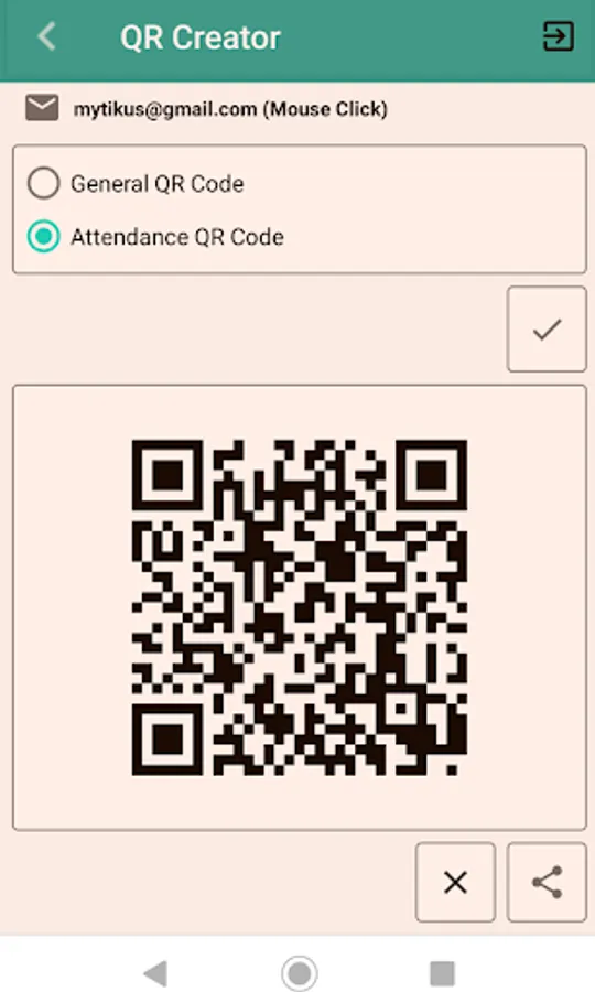 3. Select Attendance QR Code and click the Tick button to generate the QR code for attendance.