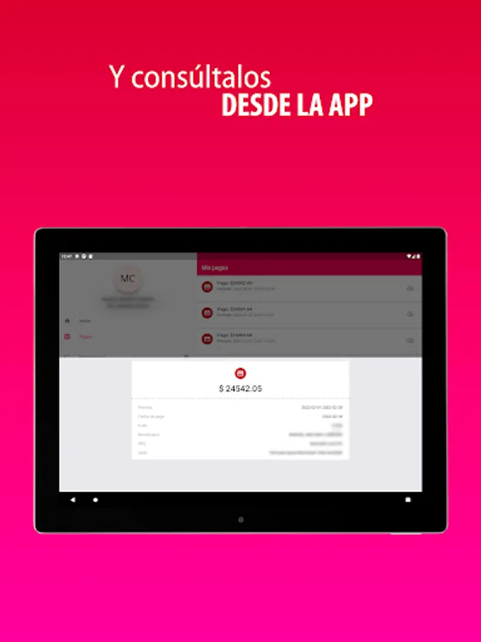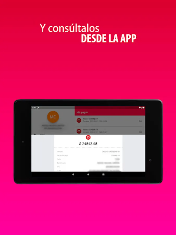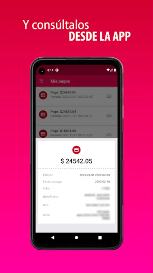 With the new mobile application, collaborators will be able to consult their electronic receipts (CFDI) with complete information on the payroll, total amount, payroll breakdown, payroll period, voucher version, folio number, certification date, information on the company that issues it and more, all from the comfort of your smartphone.
