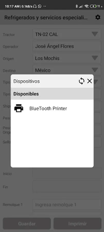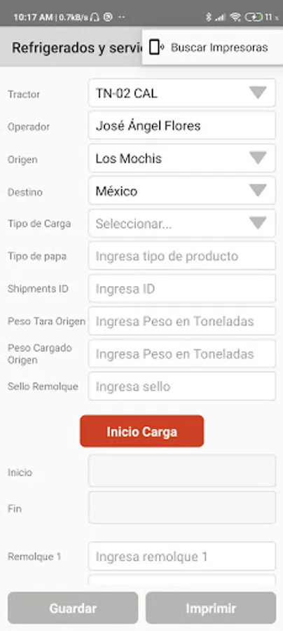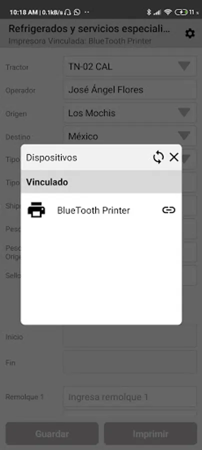 The Linker TC application is intended for operators of the InnovaLinks company, where they can record their trip considering the weights for each trailer in order to print their remittance bill of lading (ticket).