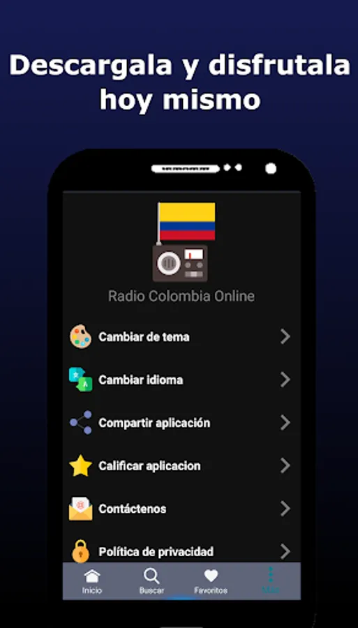 Radios de Colombia en vivo gratis has an intuitive and pleasant graphical interface, where you can count on useful tools such as station searches, add to favorites, and share a station to your friends. Music radios from the 80s, old, rock music, and all the most listened to radios.