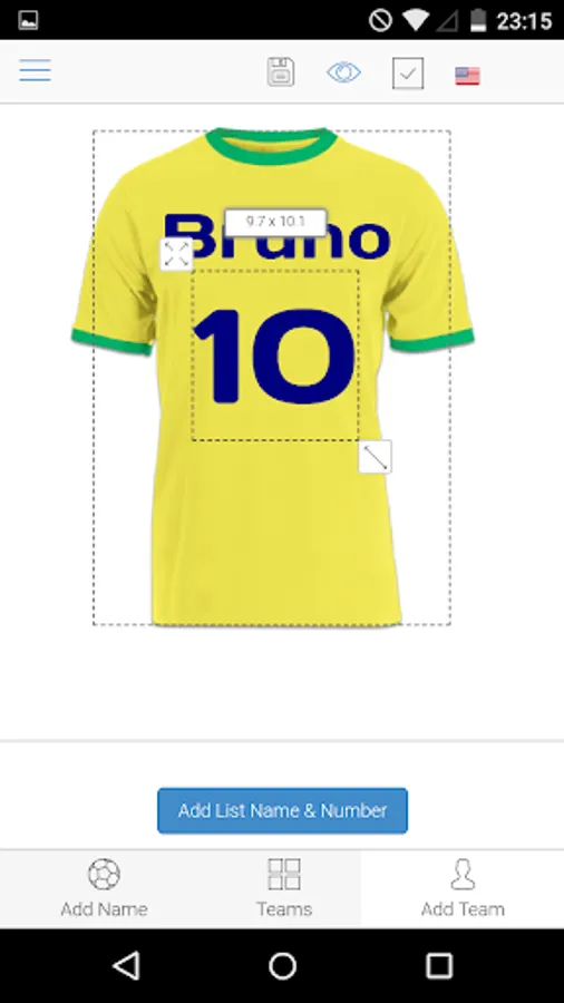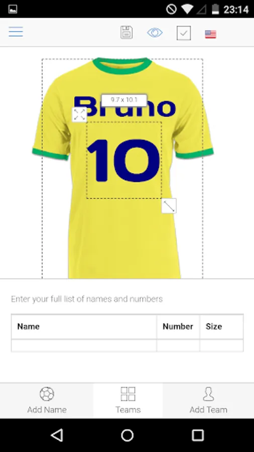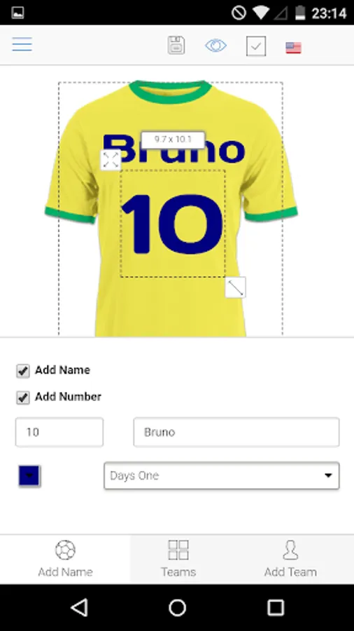 Designer football shirts, create and make personalized sports shirts, upload and save football designs, add name, number and create teams to design professional football jerseys.