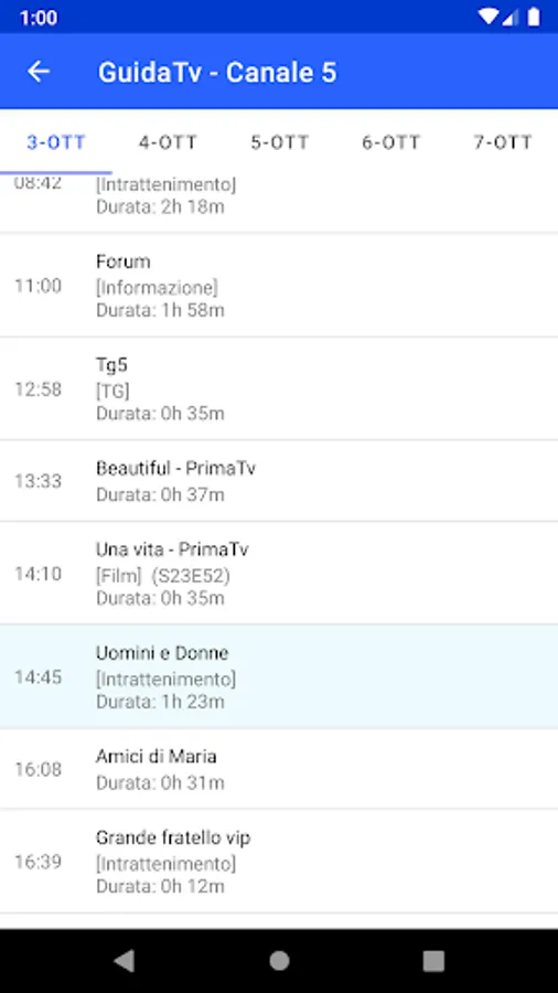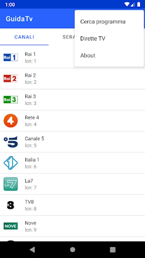 The GuidaTv application allows you to view the schedules of the major TV broadcasters in Italy.