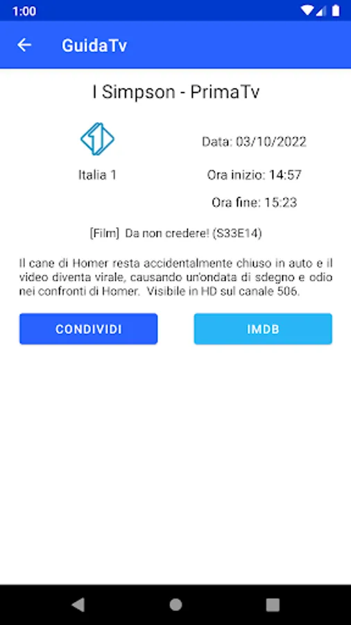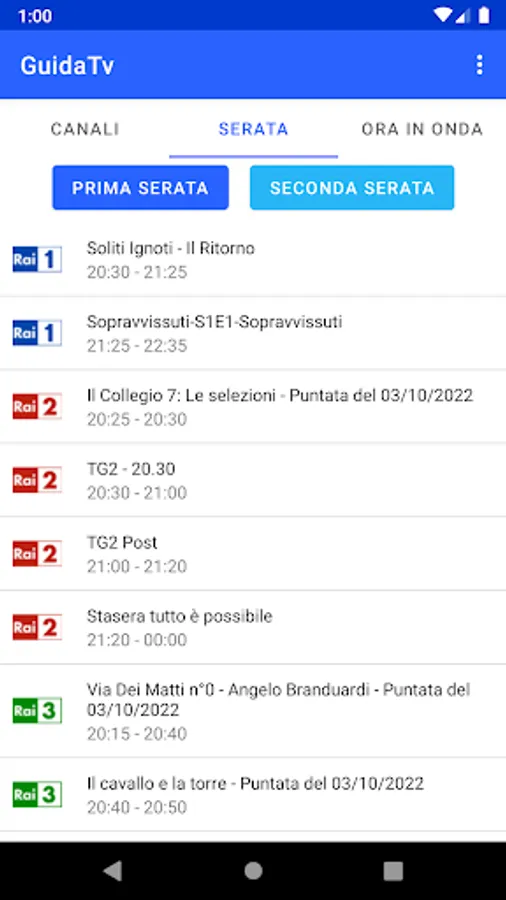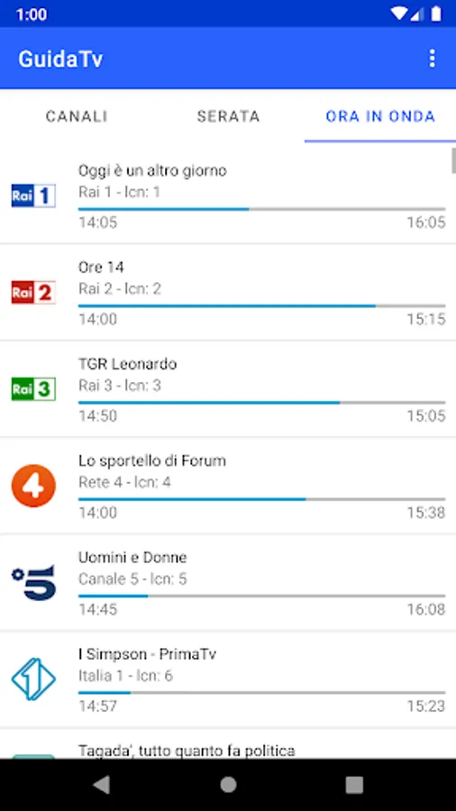 Through the Ora In Onda tab you can see the programs broadcast at that moment.