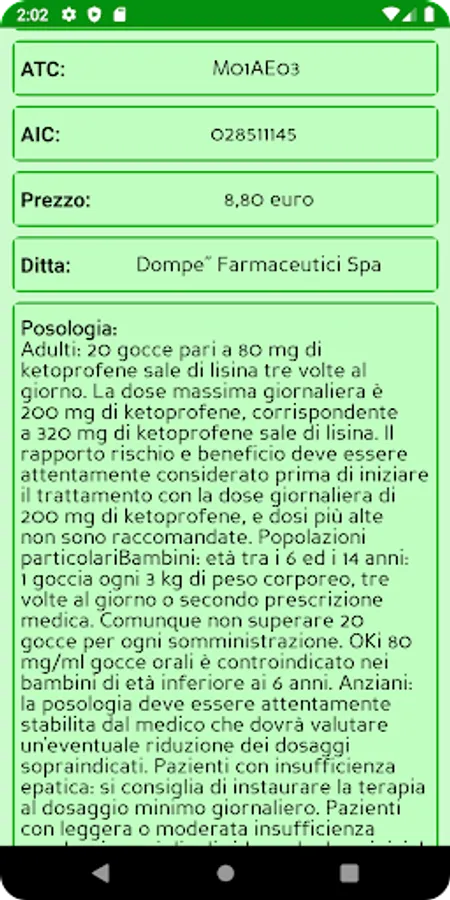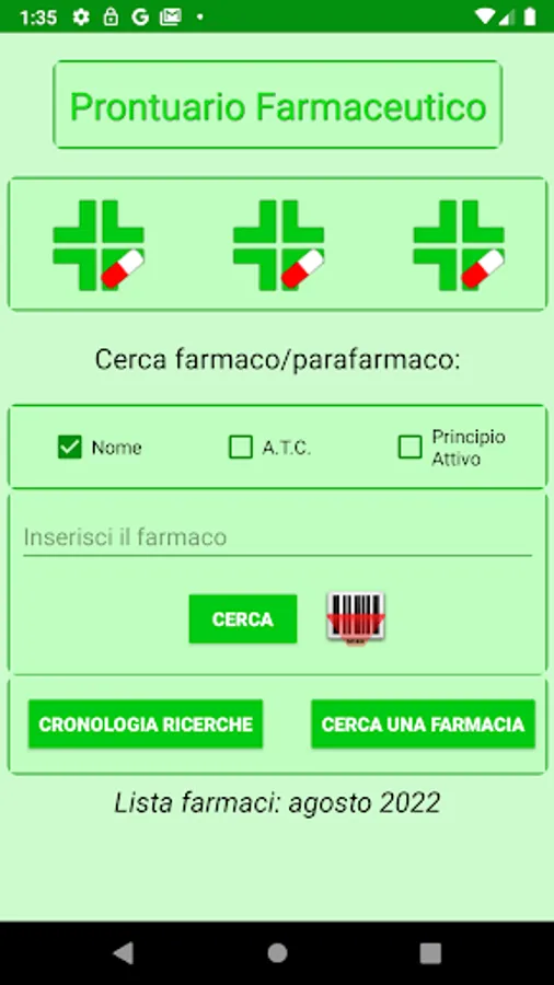 The application allows you to search, by entering the name, ATC or active ingredient, the drugs / parapharmaceuticals present in the Italian territory.