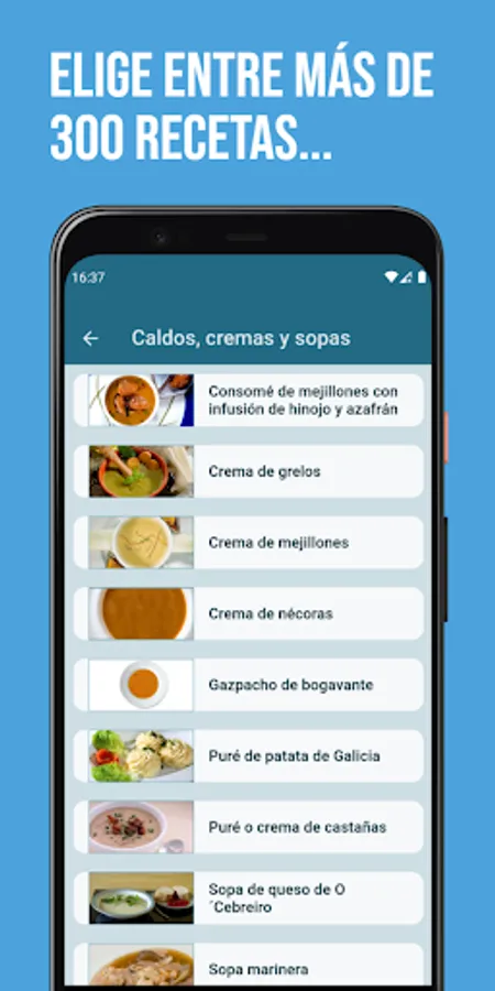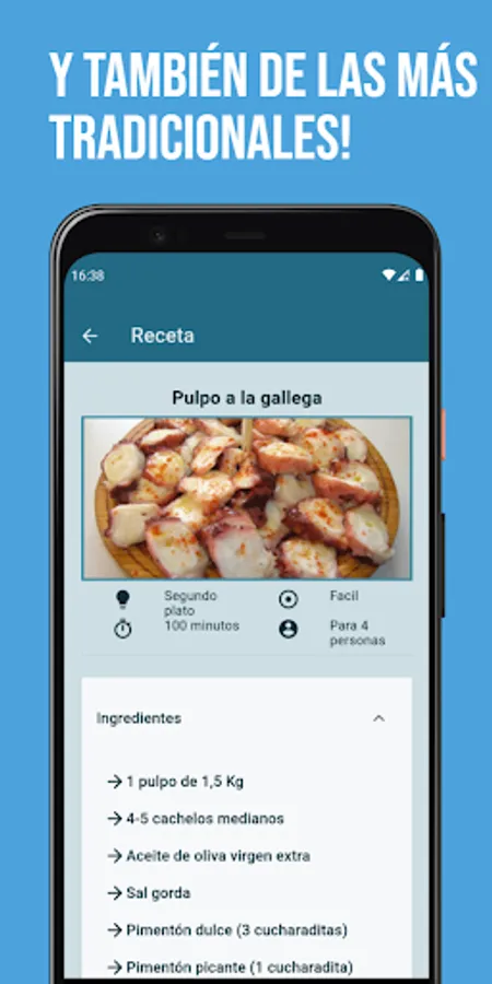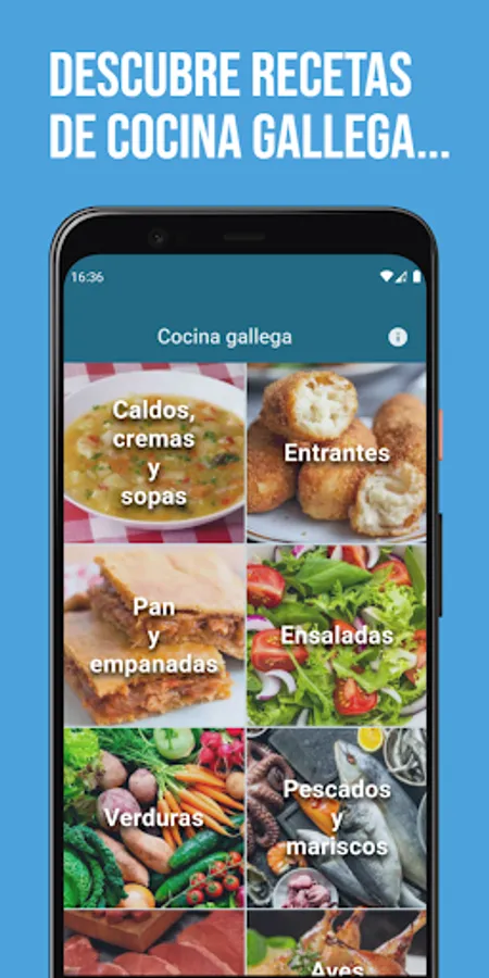 Galician cooking recipes, aims to be a compilation of recipes from the Autonomous Community of Galicia. In this app we can find all kinds of recipes classified by different categories, ranging from the most traditional recipes to the most modern fusion cuisine recipes that use typical Galician products.