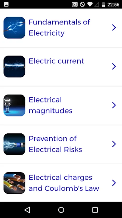 In this educational app, users explore electrical fundamentals through video lessons and interactive projects. Includes tutorials, quizzes, and practical exercises covering circuits, magnetism, and renewable energy topics.