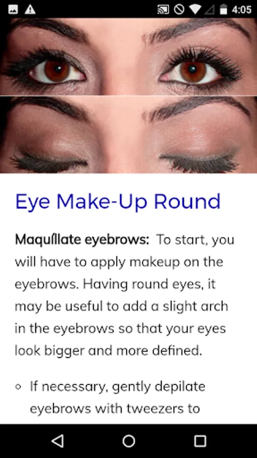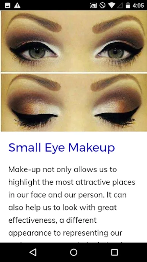 Make-up course for eyes, make-up of small, large, brown, separated eyes, effects for eyes, make-up tips and more.