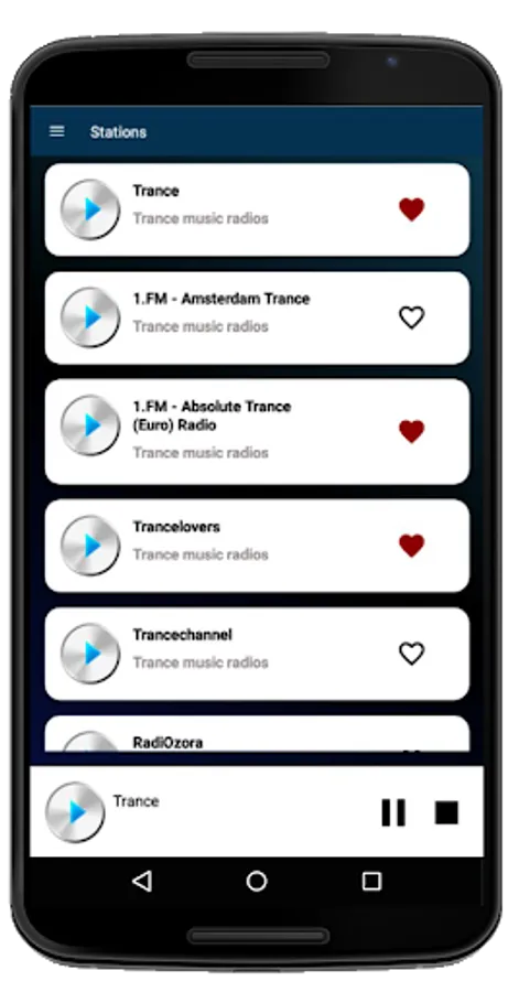 Trance music radio, trance songs, there may be some stations that do not work because their stream is offline. Remember - Just online radio, and internet radio will work. Sometimes the app will take a few seconds to load depending on your internet conection please wait a moment to enjoy the best Radio Trance, trance music app.