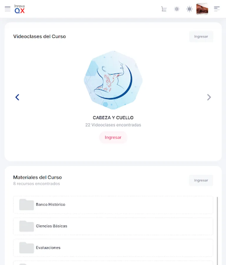 Aula virtual de la academia Innova Qx, enfocada en brindar una preparación académica del más alto nivel y con la más alta calidad a través de un método único que garantiza el éxito en los exámenes de la carrera de medicina de los estudiantes tanto de pregrado como de especialidad.