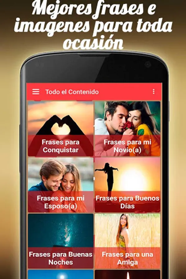 Beautiful Phrases for all occasions is the ideal application for you ⭐, because you can choose from a collection of Images of Love, for February 14, of Friendship, for your family, with Phrases that you can share very easily through your social networks.