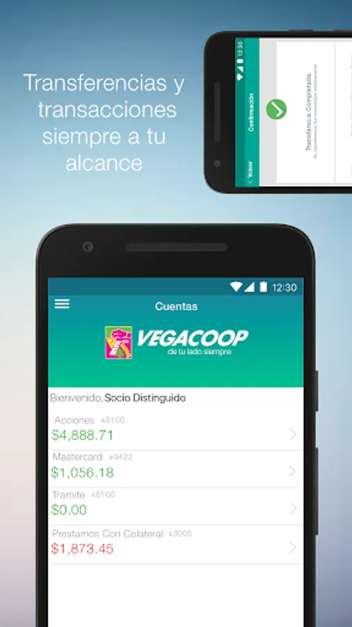 Vegacoop © Mobile lets you take control of your accounts and balances at any time and place.