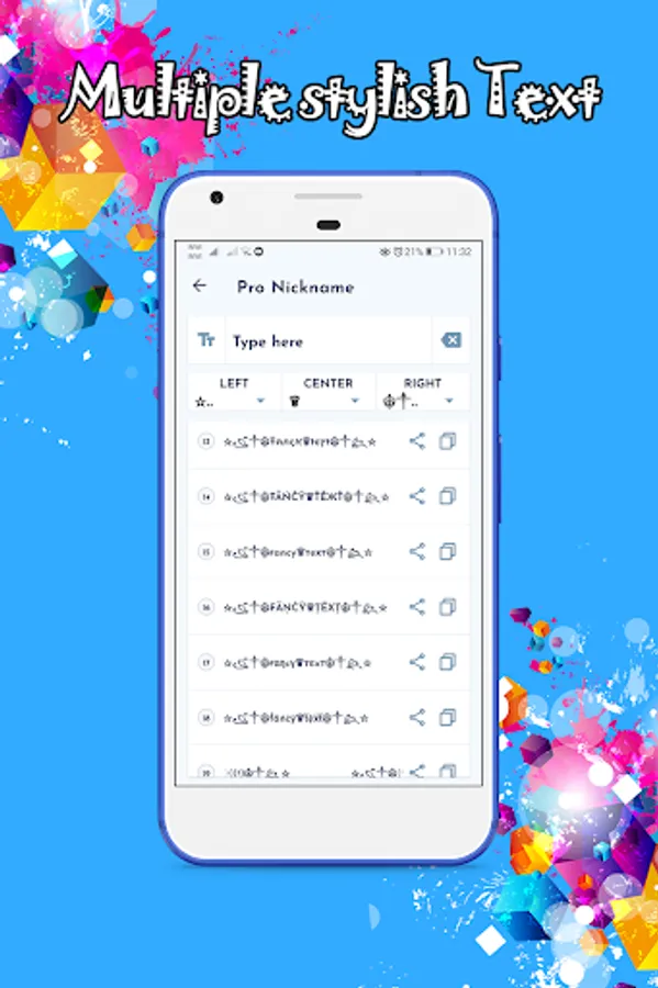 Let’s open up Stylish Text on your mobile and start writing beautiful bio’s. Write a tweet in Bold, Italic, Cursive style to highlight the text on your timeline. Write decorative greetings and surprise your friends on their special days. Chat with fancy fonts in groups and be a special one to get attention. Create some unique names for popular games and stand out among other players.