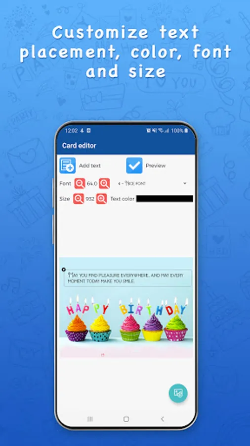 Putting one or more predefined or personalized texts and positioning them freely on the greeting card.