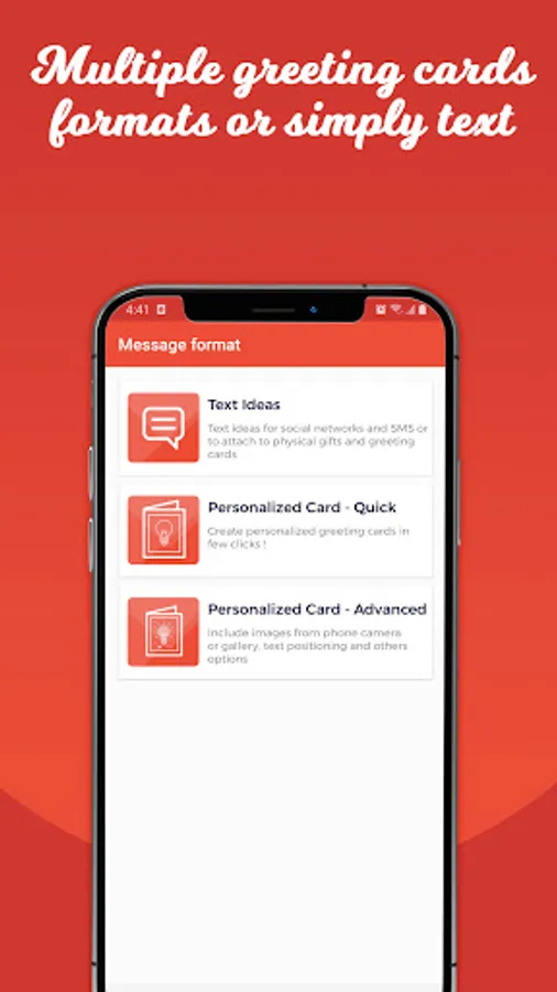 We offer different greeting formats ranging from simple text to a fully personalized greeting card.
