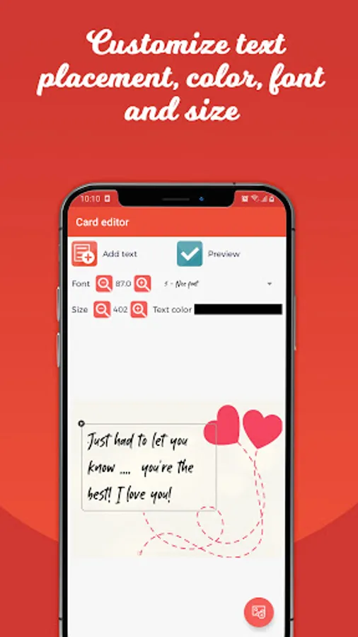 Putting one or more predefined or personalized texts and positioning them freely on the greeting card.