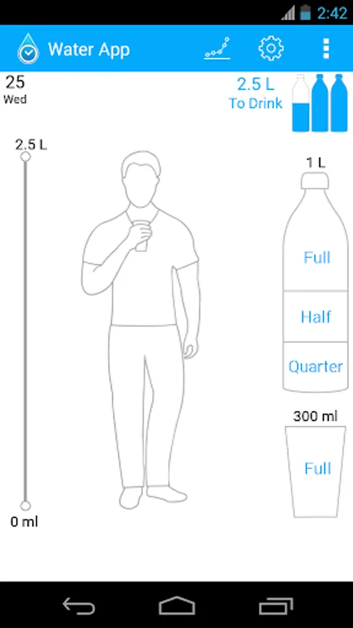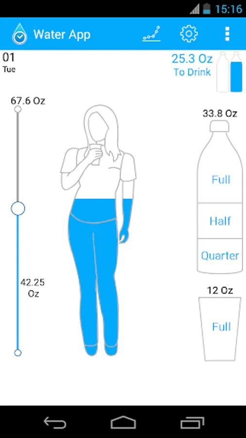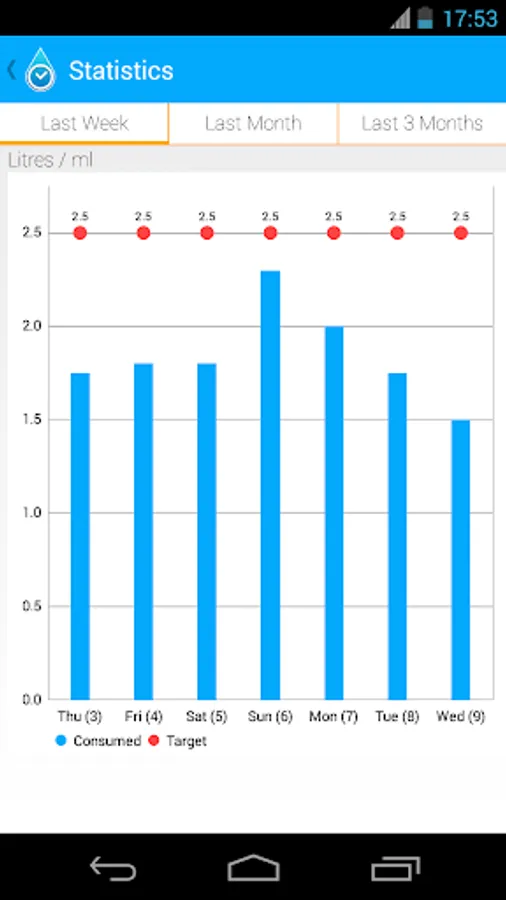 5. Graphical insight into your water drinking pattern with daily, weekly and monthly statistics