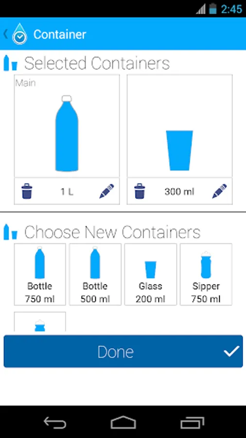 4. Record your water intake using the container of your choice. Application will suggest some default containers (Bottle, glass or sipper) but you can change it to the one that you normally use.