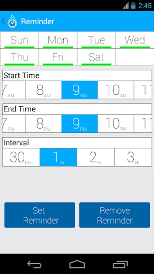 2. Gives you reminders to drink water as and when you want. App will suggest start and stop time and interval for reminders but you can change it very easily as per your need.