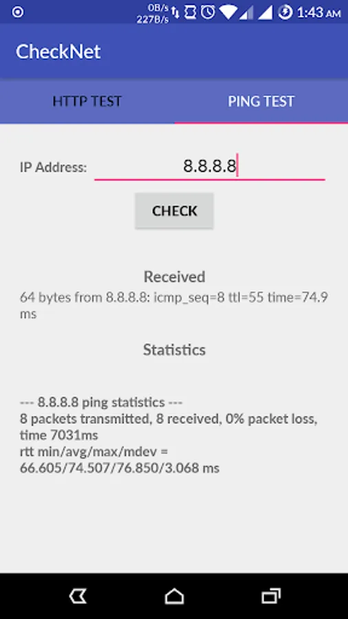 CheckNet is a minimal yet useful app which is useful for checking whether a particular Website or IP is reachable.