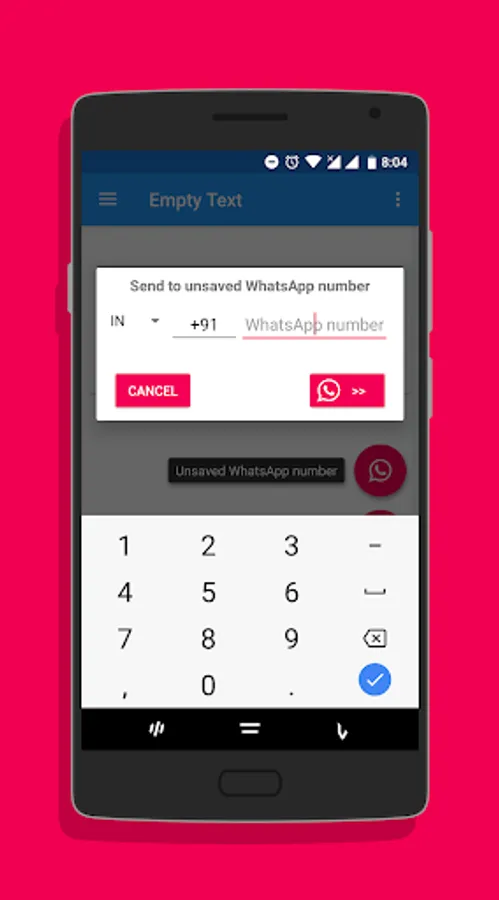 BETTER YET: You can even send empty texts to UNSAVED WHATSAPP NUMBERS! No need to save their numbers! Just enter the number, and send the Empty Text!