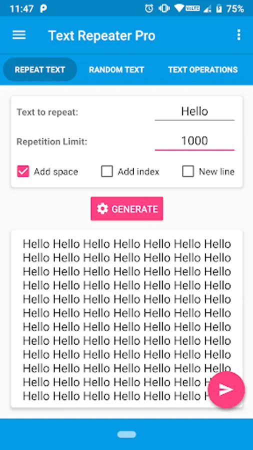- Repeat Text: Text Repeater Mode! Type text or Emojis ONCE and repeat it as many times you want!