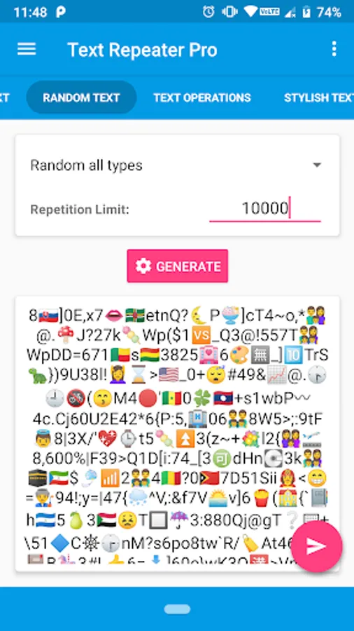 - Random Text: Generate RANDOM characters, Emojis, Numbers, or All of them!