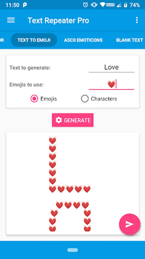 - Text to Emoji: Create text with Emojis or characters!