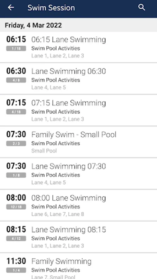 Get real-time access to your centre’s timetable for lane swimming, recreational public swim and Family swimming sessions.
