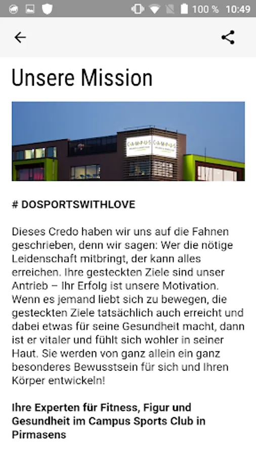 All news from your campus clubs Pirmasens and Saarbruecken are always up to date on your smartphone and the main be sent by notification on your smartphone: So you know immediately if there are new courses and do not miss any special events more.