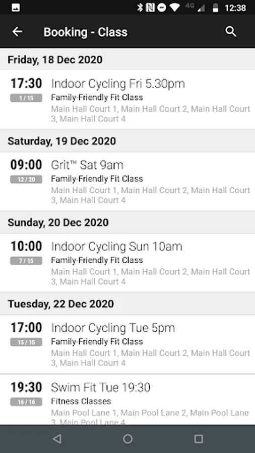 FITNESS CLASS BOOKINGS